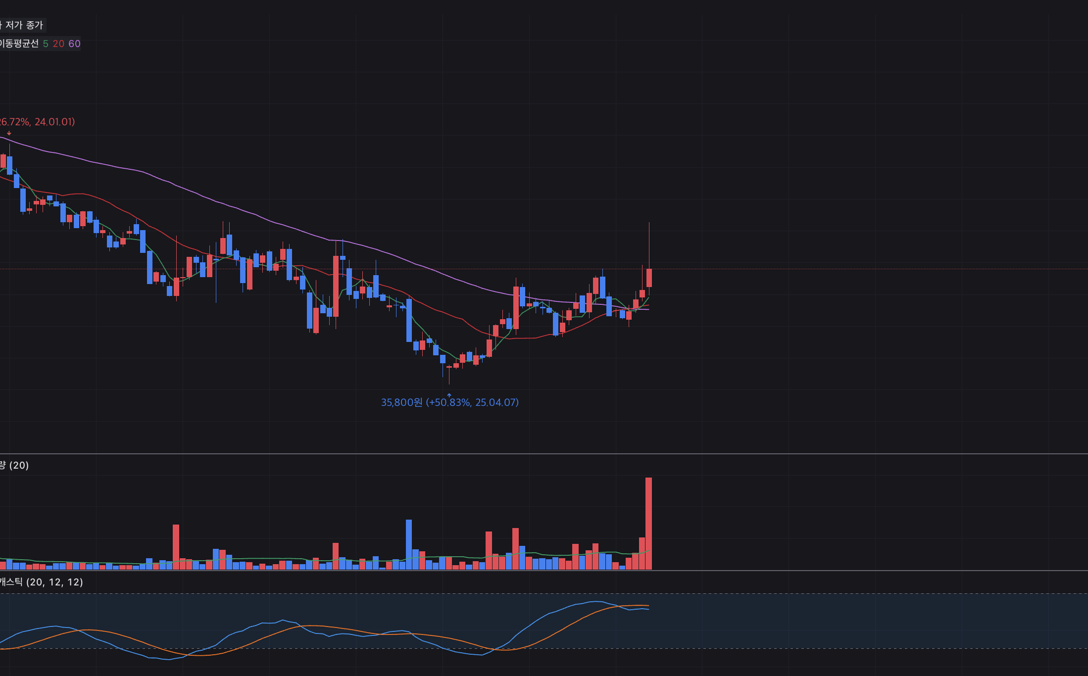 주봉에서 턴이 나온 경우는상승 폭이 굉장히 클 수도 있다손익비는 좋은 자리니까 계속 팔로우 업 해보자