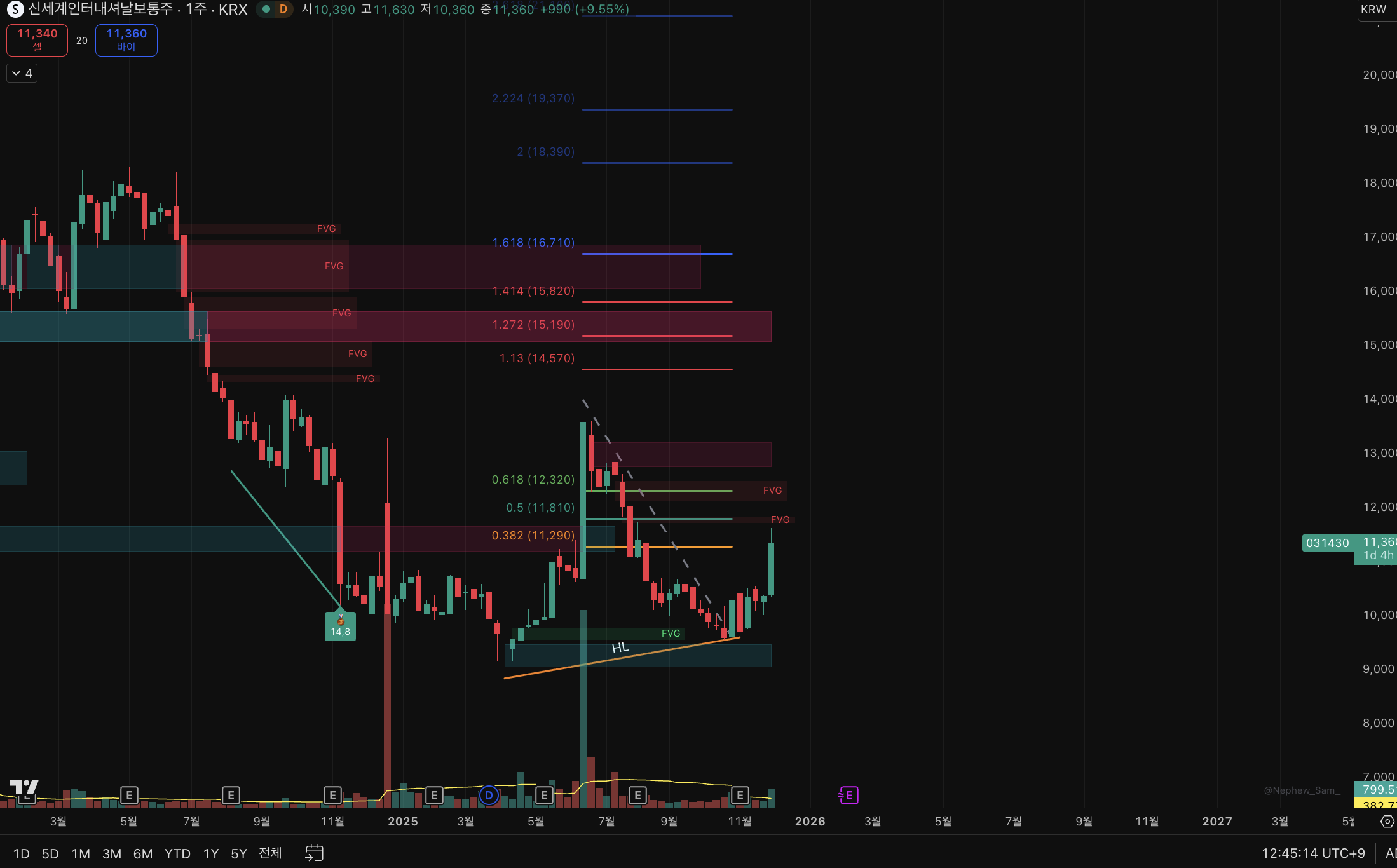 0.382 부근 FVG 내에서 잡아보면 될 듯?