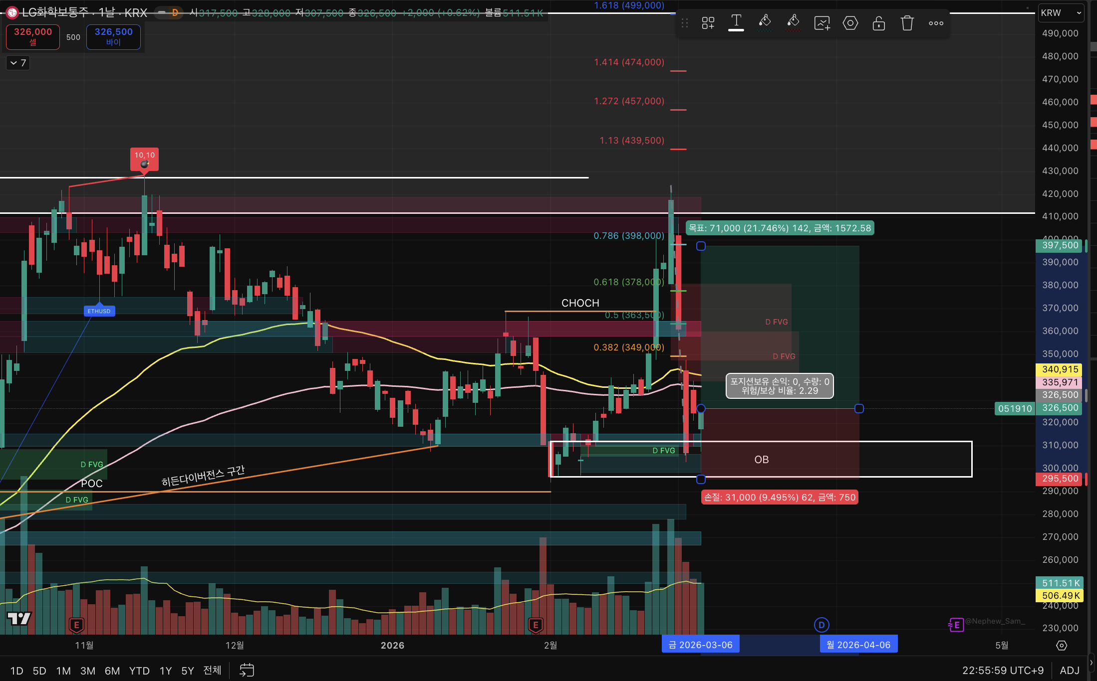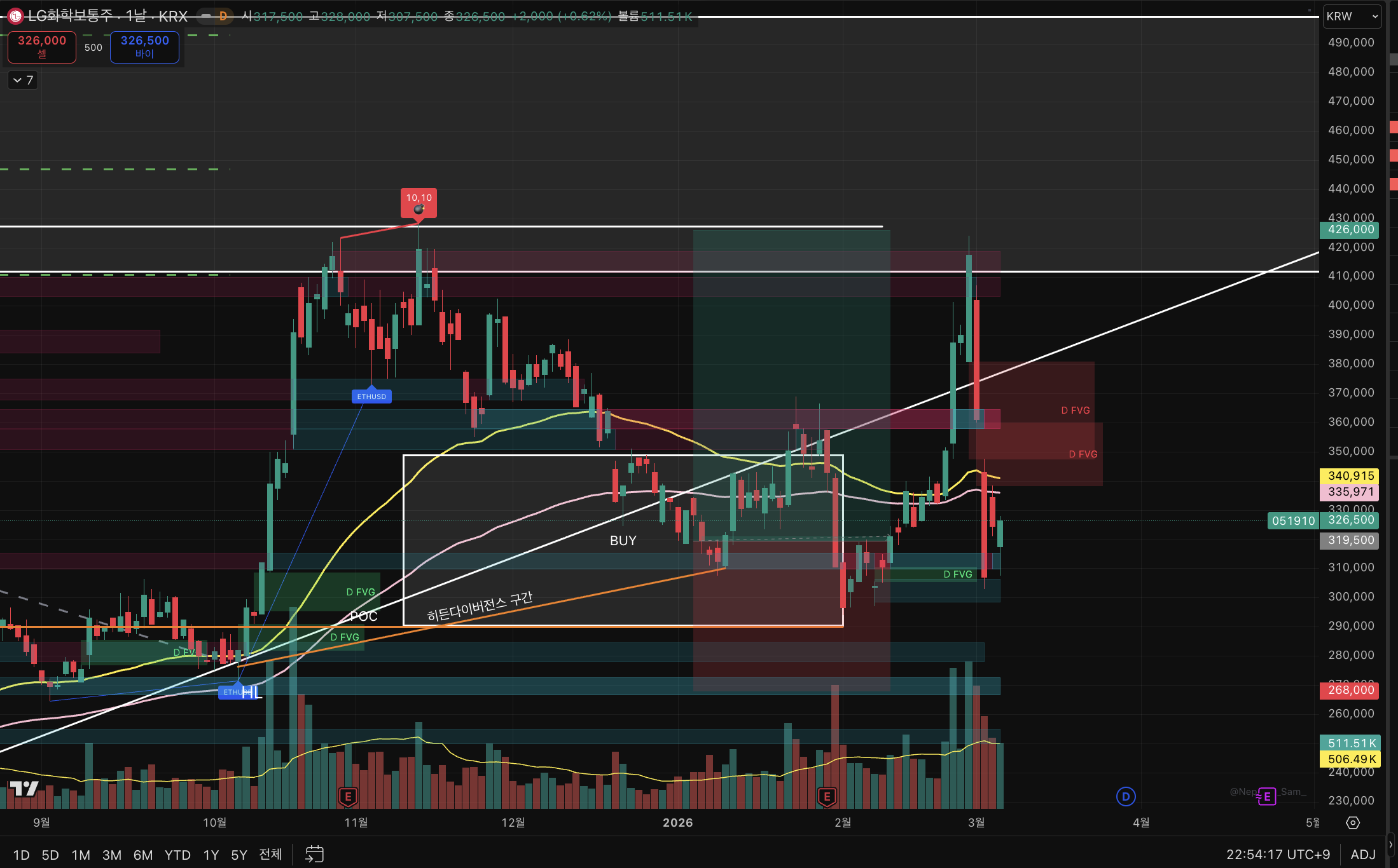 📅 분석 일지: 26. 1. 2. (금)1️⃣ 눌림 구간과 히든 다이버전스?##📌 LG화학(051910)2025.11.18 - [재테크라이프/국내주식] - LG화학 주가 및 차트 분석 - 피보나치와 다이버전스로 매매하려면? LG화학 주