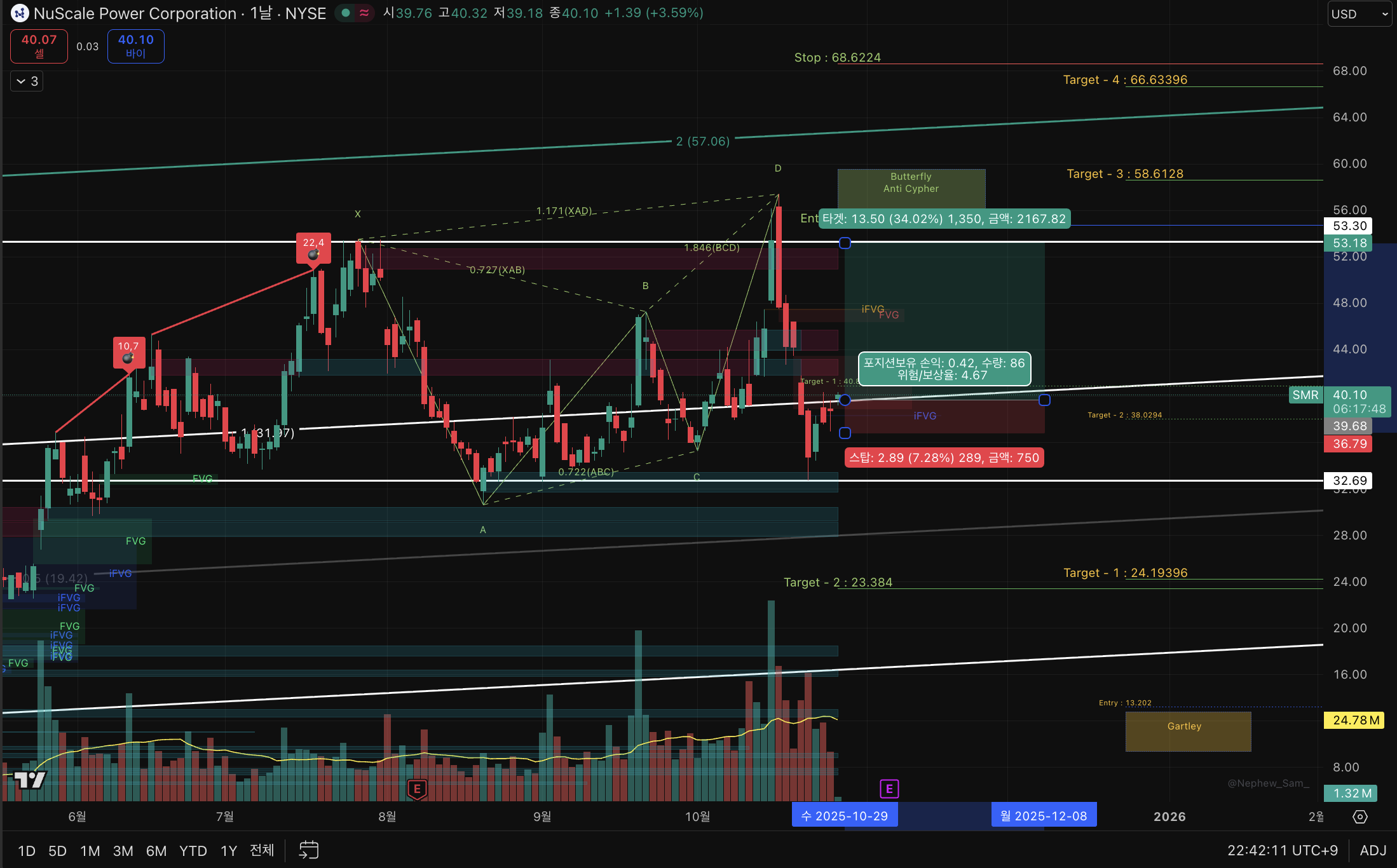더블탑을 찍고 하모닉 패턴과 함께 하락했던 상황